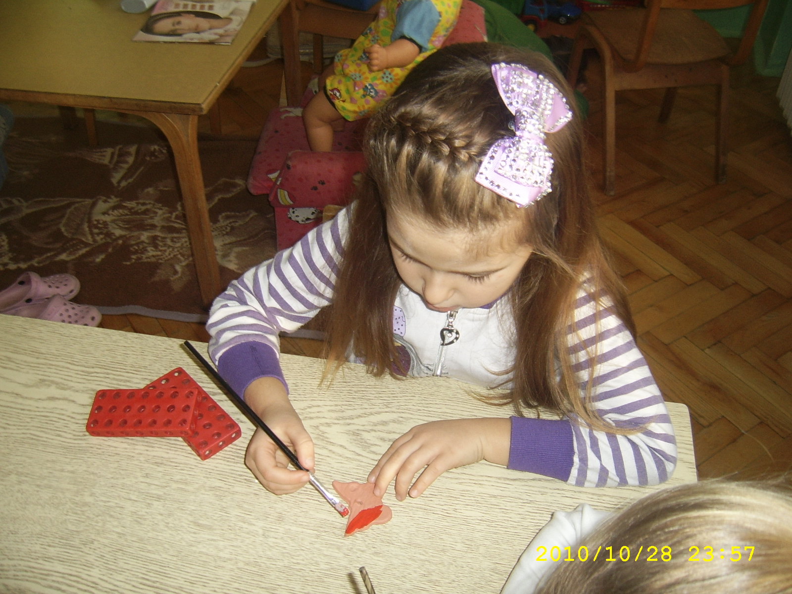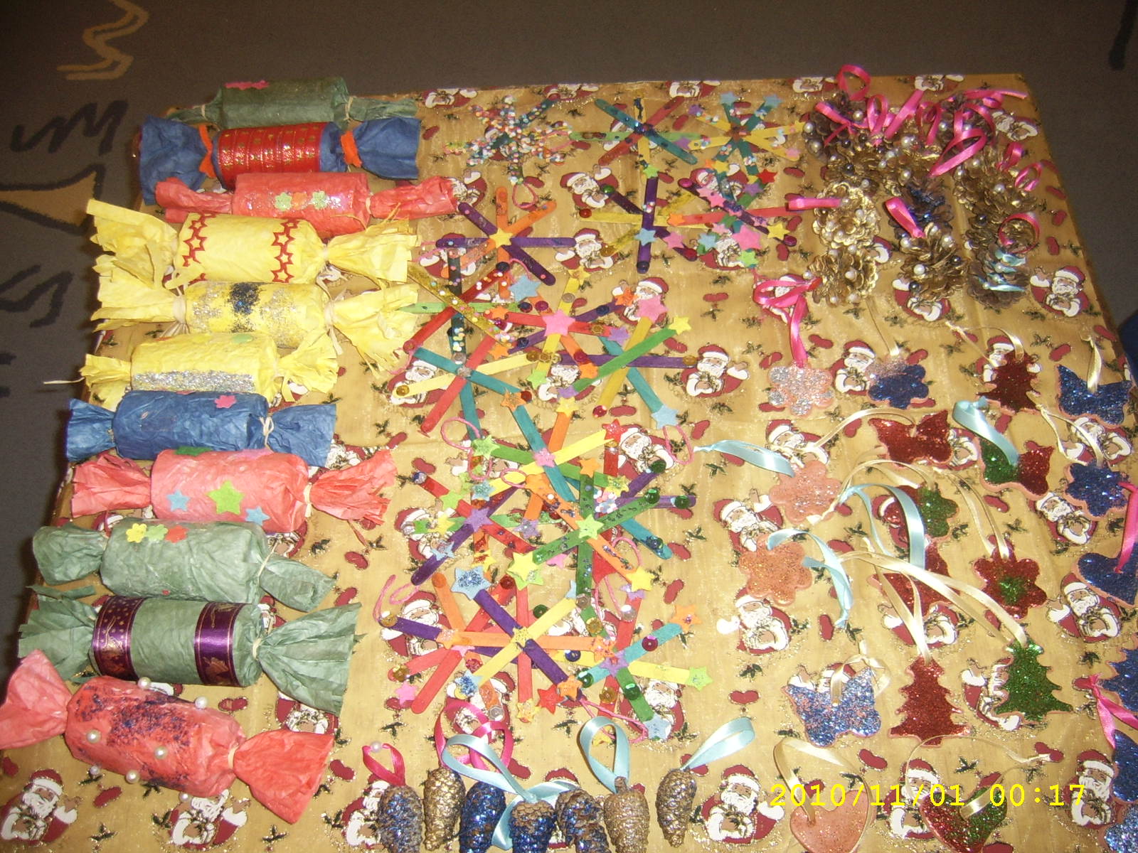 Deca su gotovo svakodnevno, u okviru slobodnih aktivnosti, sa uživanjem pravila razne ukrase namenjene Novogodišnjoj izložbi. Pravili smo: ukrase za jelku od šišarki, štapića za sladoled…