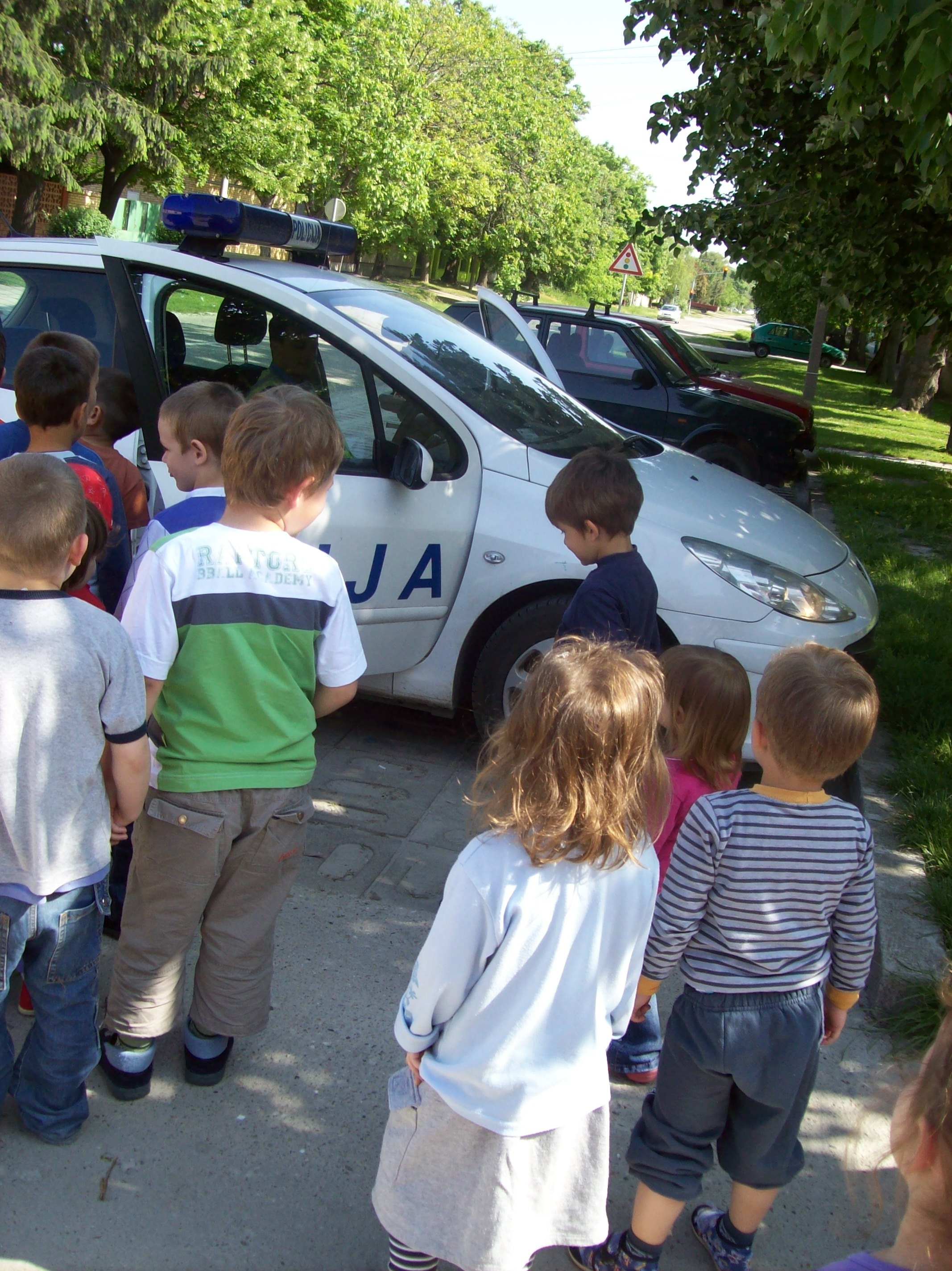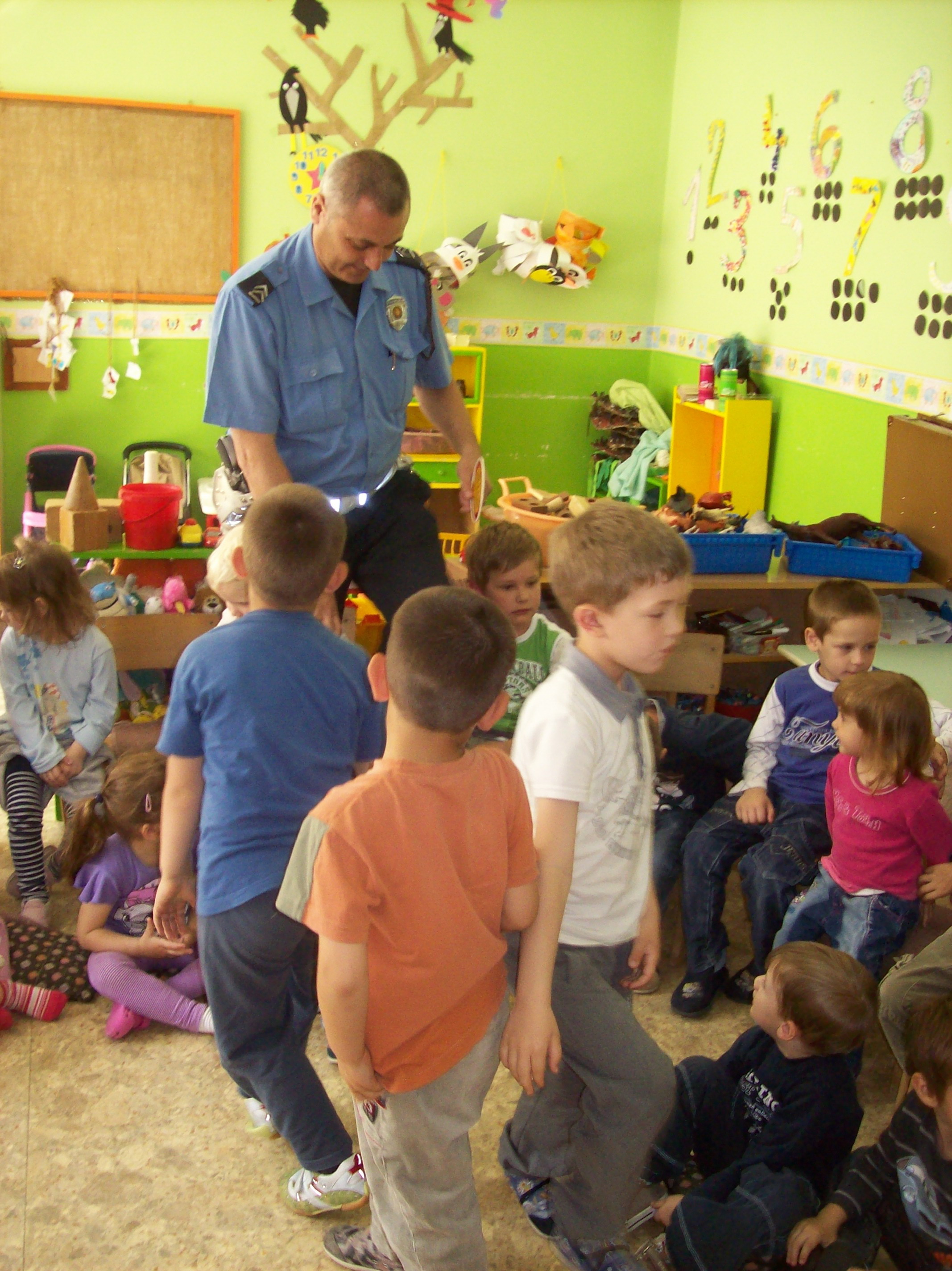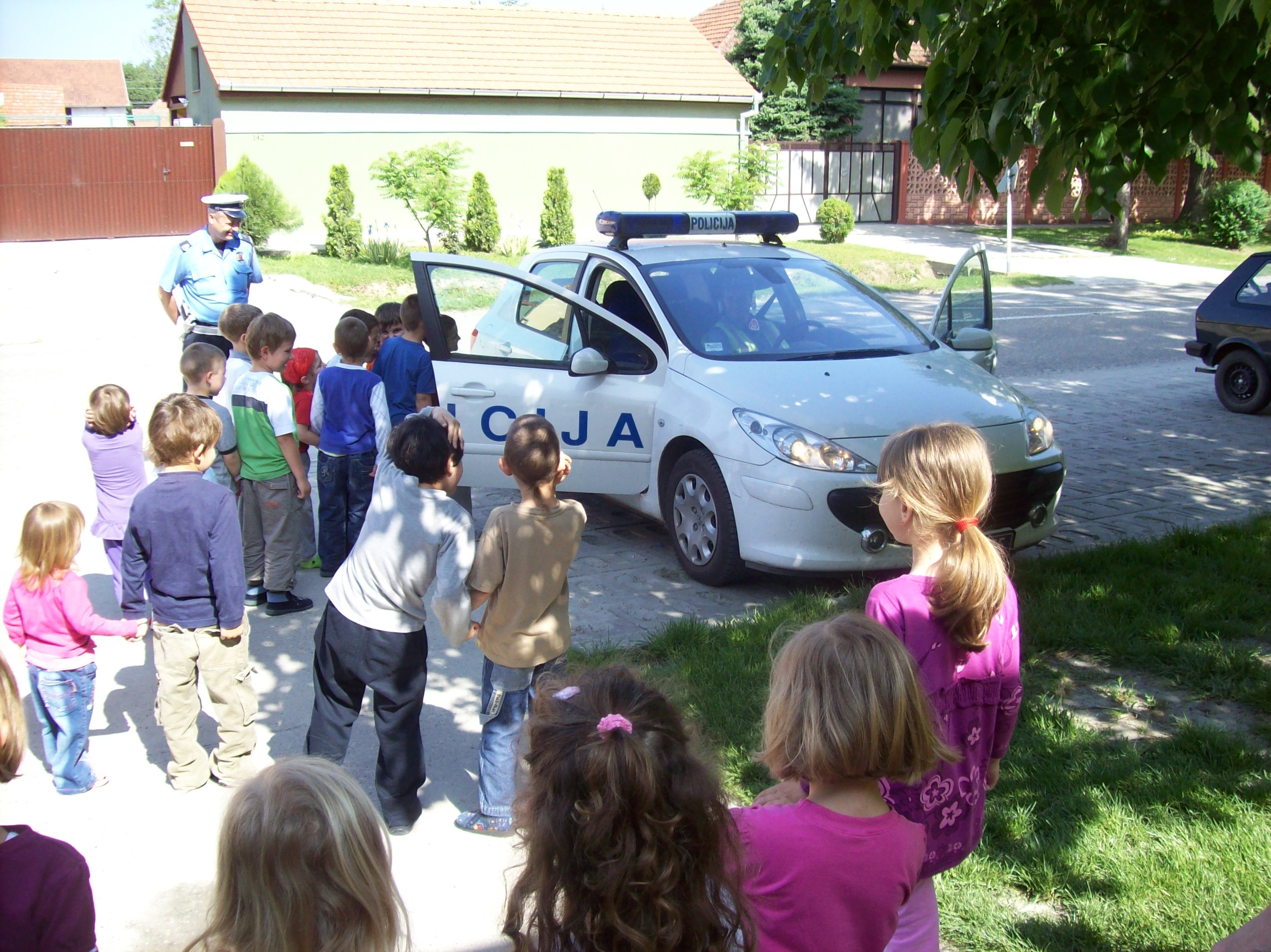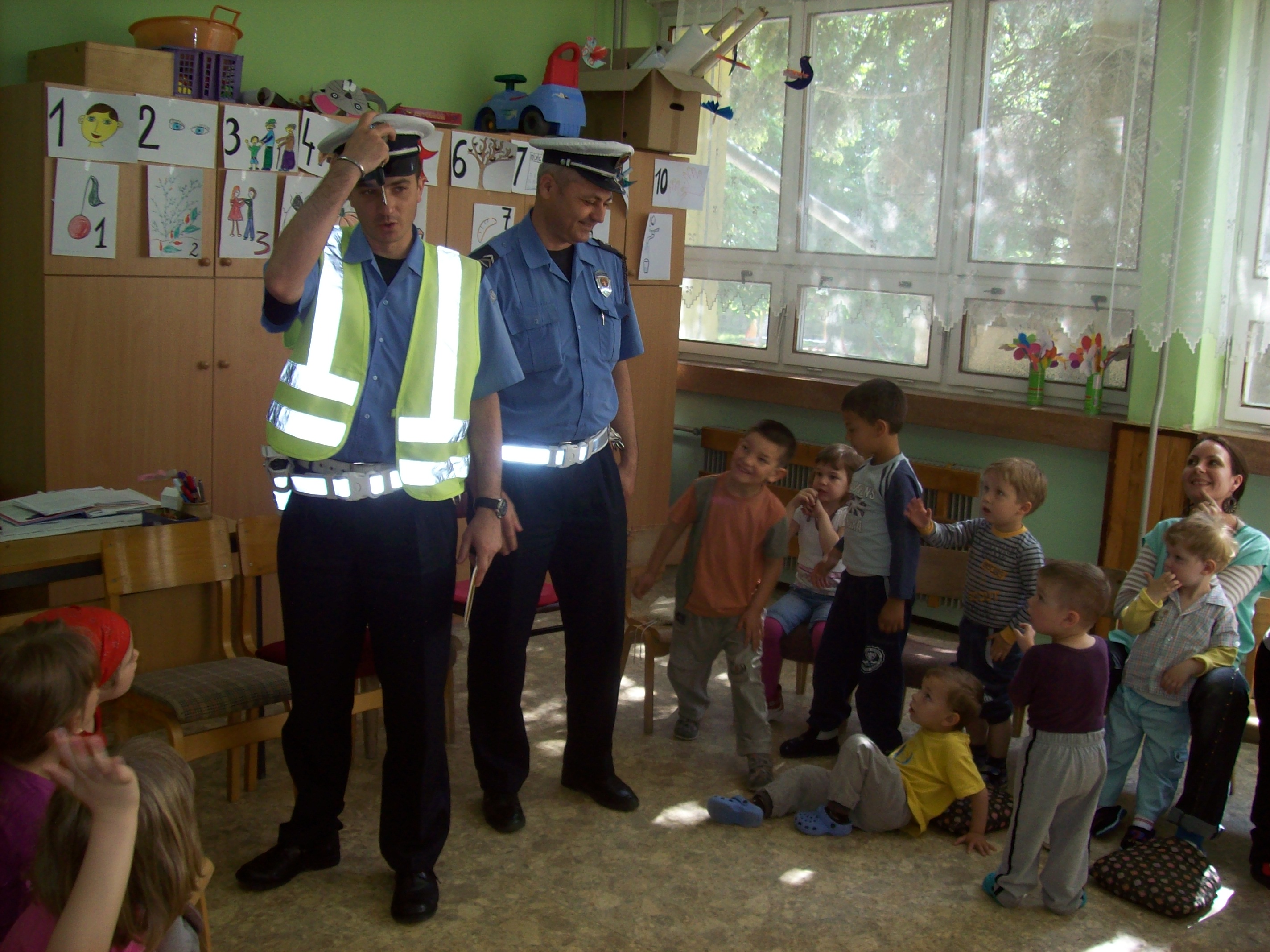 Deca iz dve dvojezične grupe i z Donjeg grada vaspitačica Varga G. E., Mitić T., Horvat A. i Bartus A. ugostili  su drugare saobraćajce.