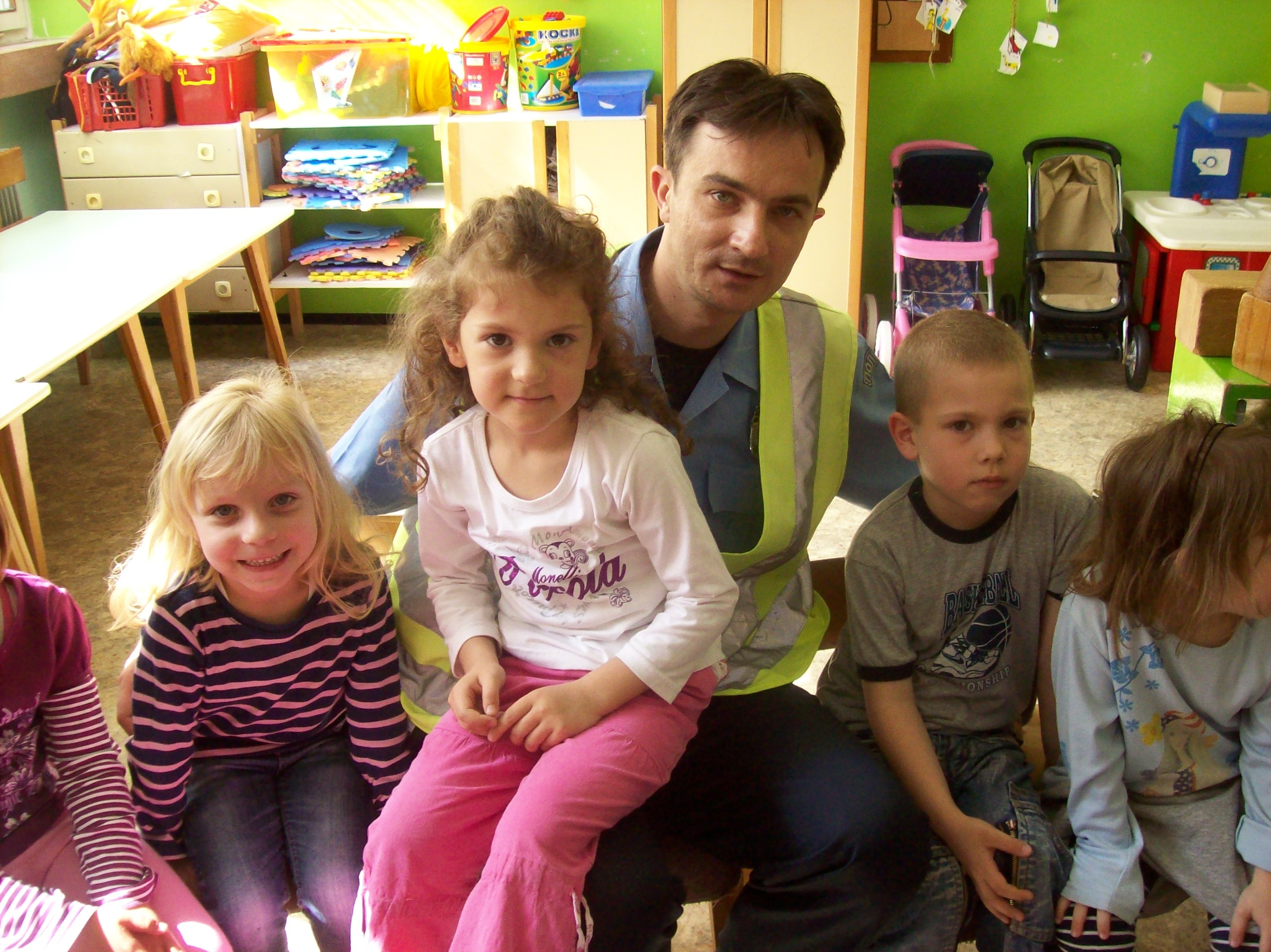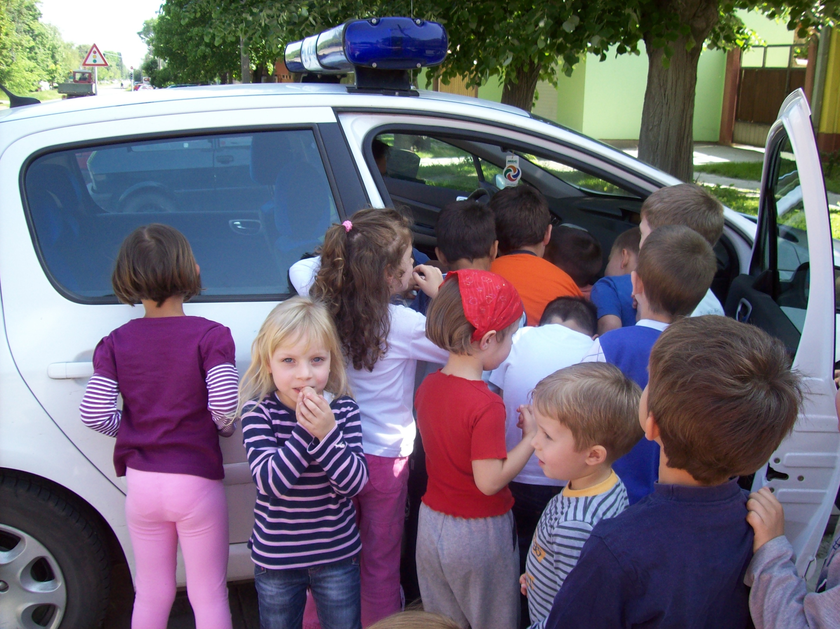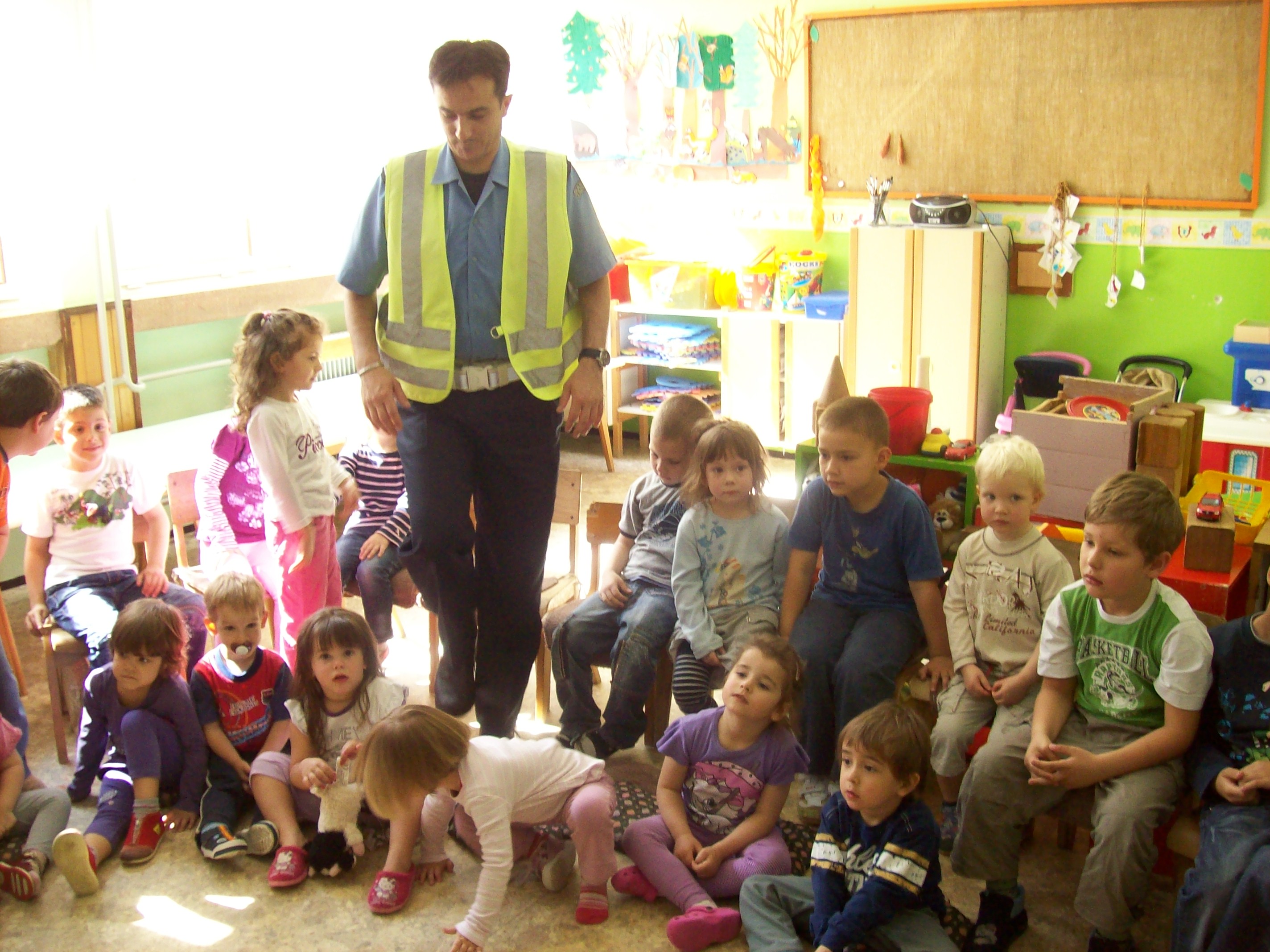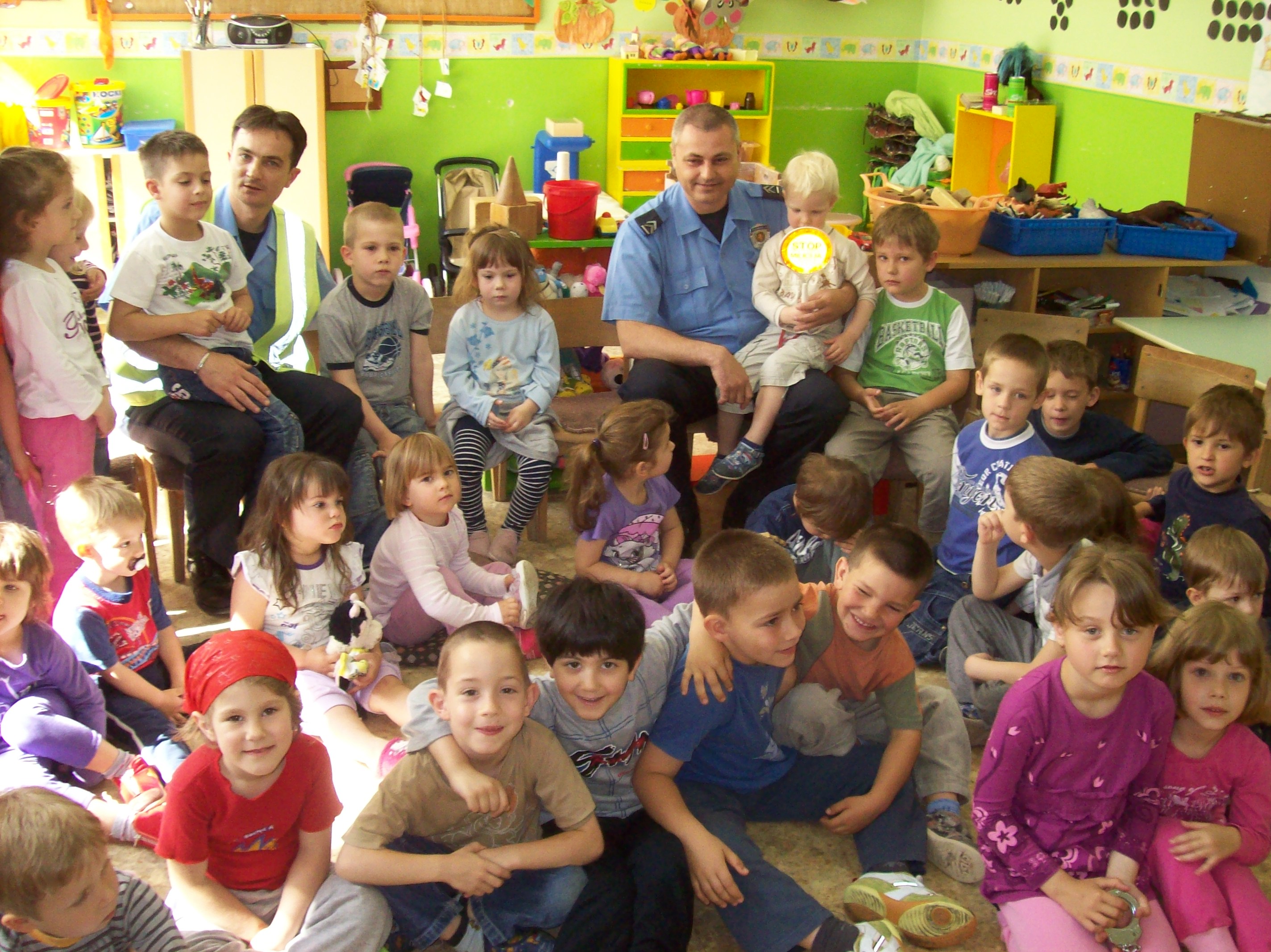 Deca iz dve dvojezične grupe i z Donjeg grada vaspitačica Varga G. E., Mitić T., Horvat A. i Bartus A. ugostili  su drugare saobraćajce.