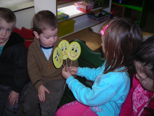 3. Игра: Моје расположење – одговор на/ или постављање питања “How are you?” нпр. “I am happy/ sad/ angry/ sleepy/ hungry/thirsty…” (вокабулар зависи од узраста деце) или игра Телефонски разговор ( вежбање поздрава и постављања питања)