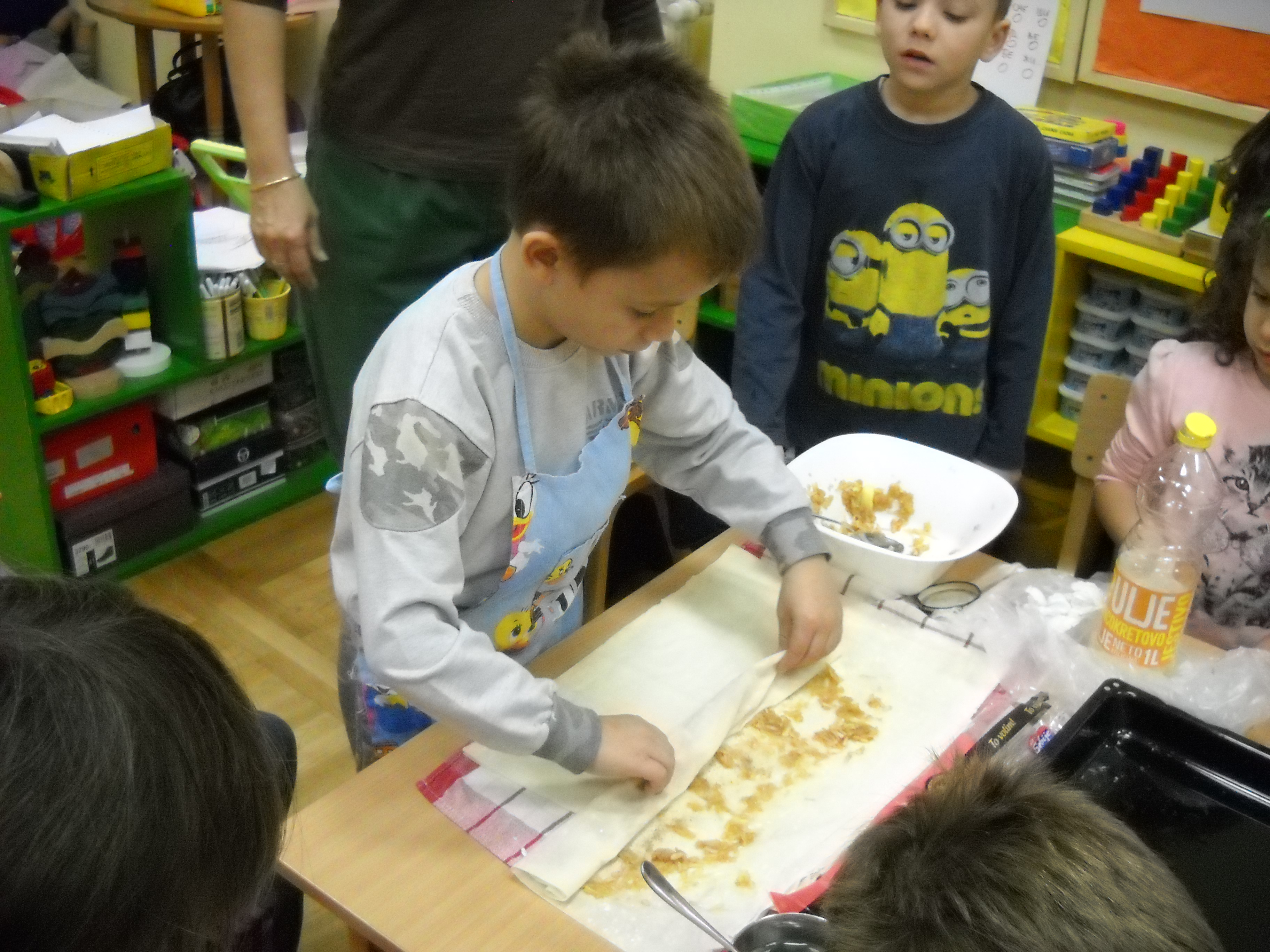 У вртићу Маслачак у групи васпитачице Славице Перић током целе недеље причало се о здравој храни. На крају су спојили слатко и здраво и направили питу од јабука.