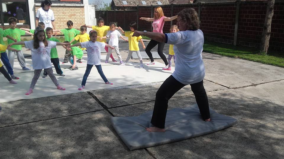 -Јога за децу: заатак деце је био да опонашају покрете које је показивала инструкторка