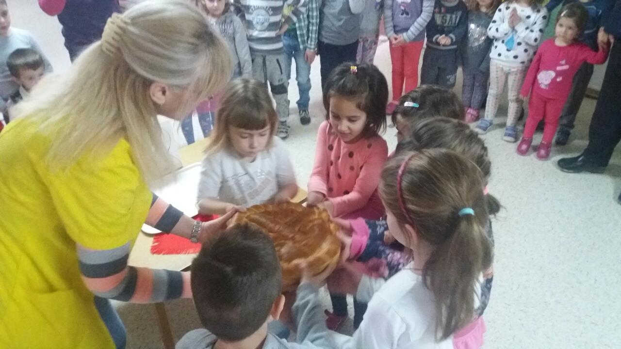 Уз славски колач, кољиво, упаљену свећу и црно вино, васпитачи су са децом која познају славске обичаје и присутне упознали са истим. Окретање и ломљење погаче су само неки од обичаја са којима су се деца упознала.
