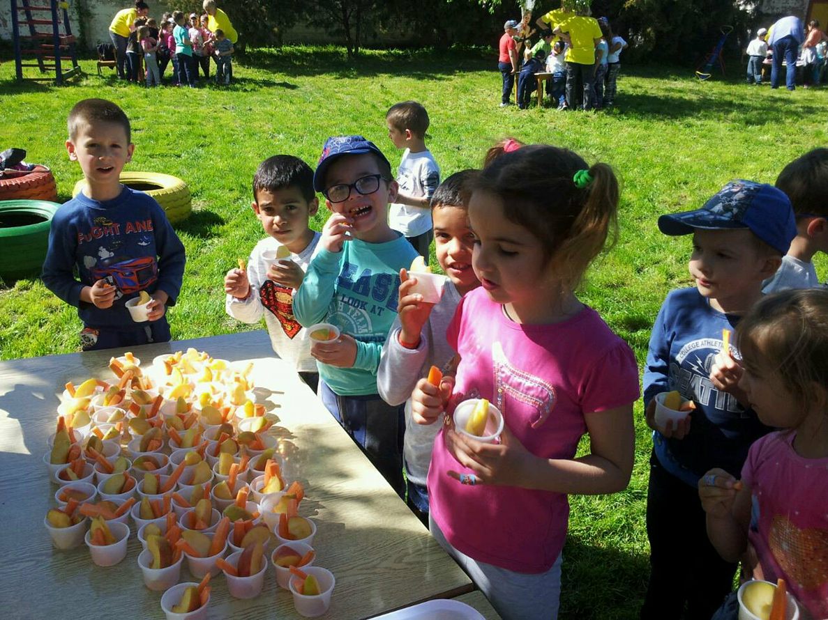 При самом доласку у вртић Чаролија сву децу дочекала је ужина: интегрална кифла и воћни сокић. Након освежења деца су са својим васпитачима организовано обилазила креативне и интерактивне штандове.