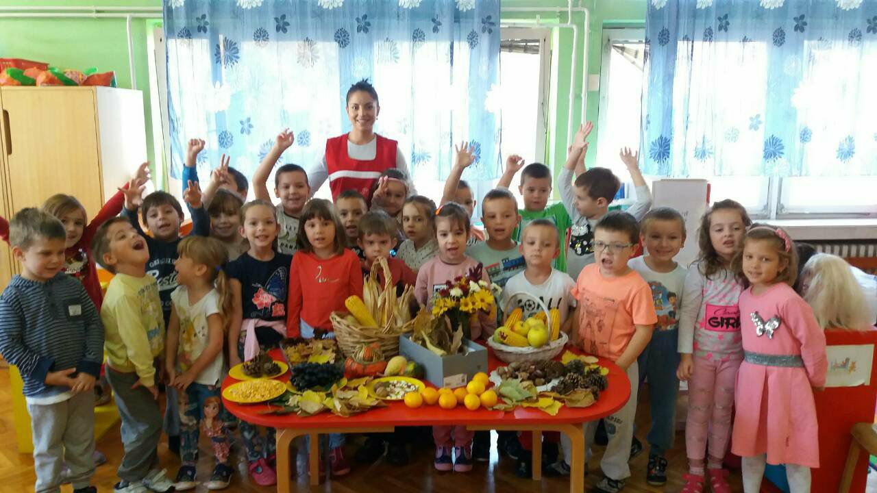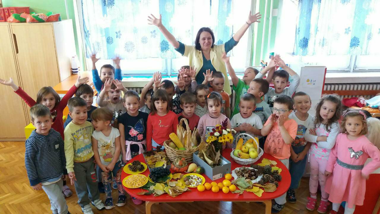 Лишће златне и бакарне боје и јесењи плодови красиће нашу собу и наше радове.“-рекле су васпитачице групе Колачићи Александра Тривановић и Јована Илић.