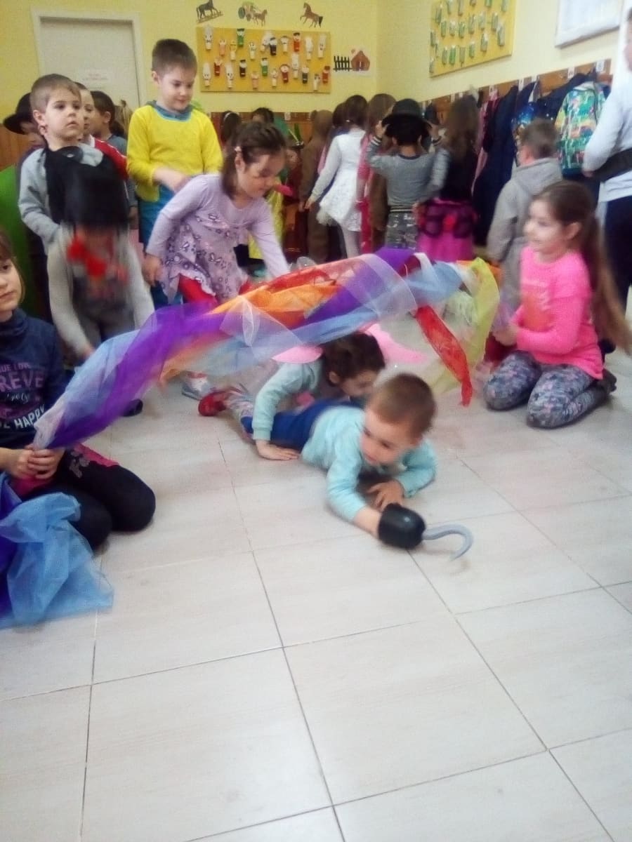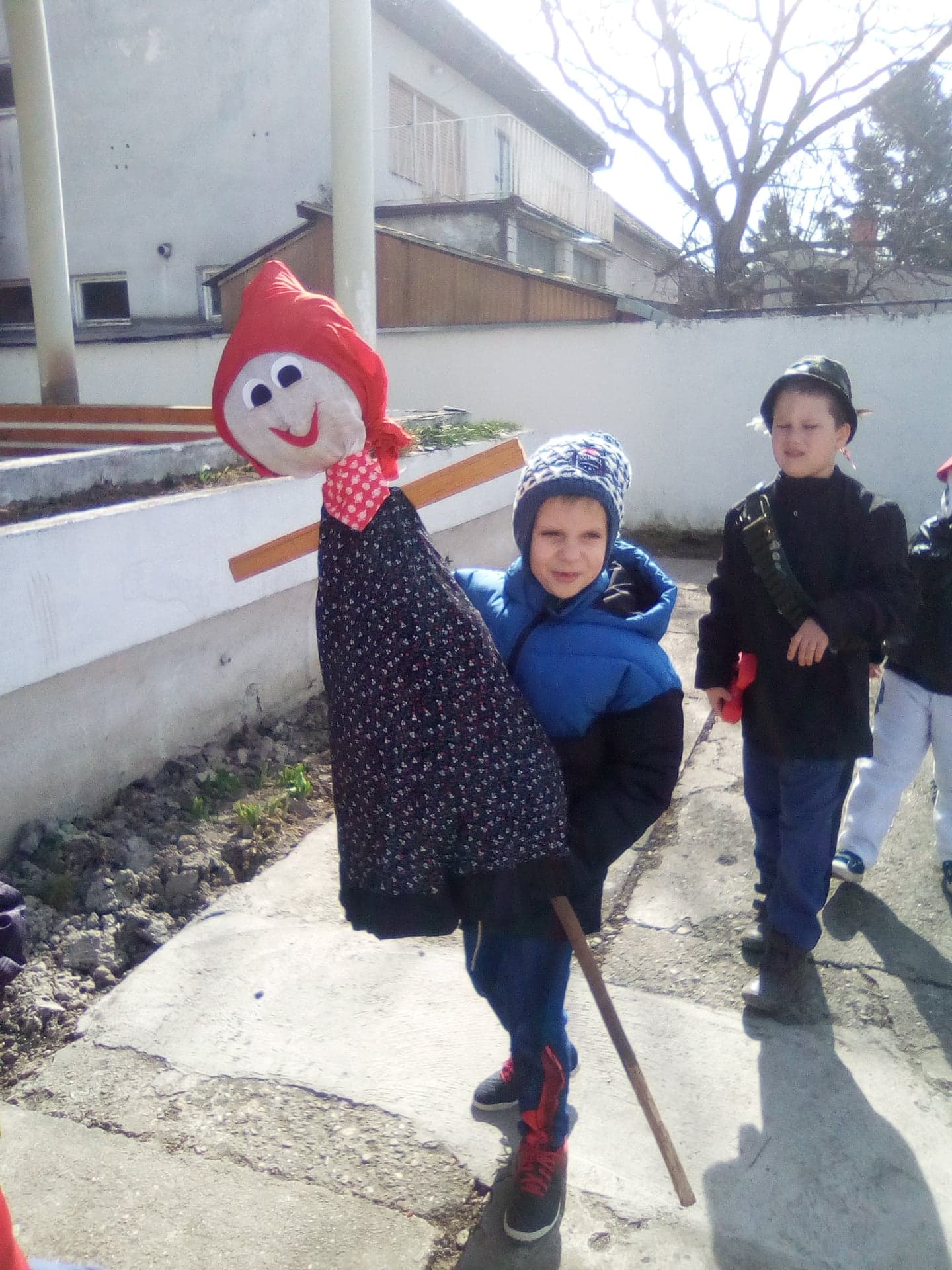 Jelmezes felvonulással, versekkel, dalokkal, ügyességi játékokkal és vidám tánccal búcsúztattuk a telet.