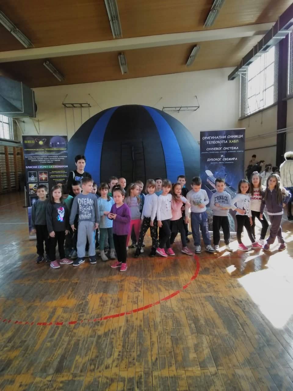 Деца су била одушевљена звезданим небом, као и планетама које су се смењивале уз мноштво занимљивих причица о њима. Захваљујемо школи што нас је позвала да погледамо планетаријум.