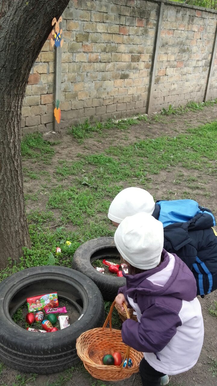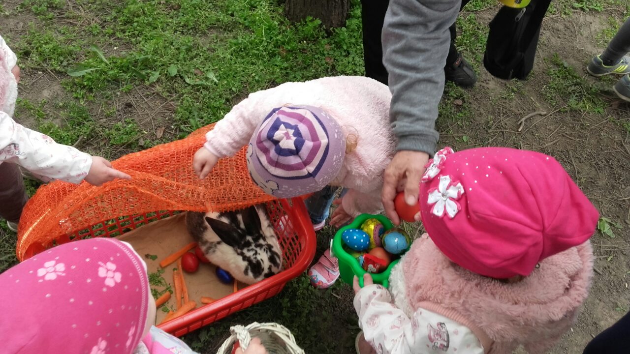 A Napsugár óvoda Katicabogarai és szüleik húsvéti tojásvadászatban jártak. A Nyuszival is találkoztak.