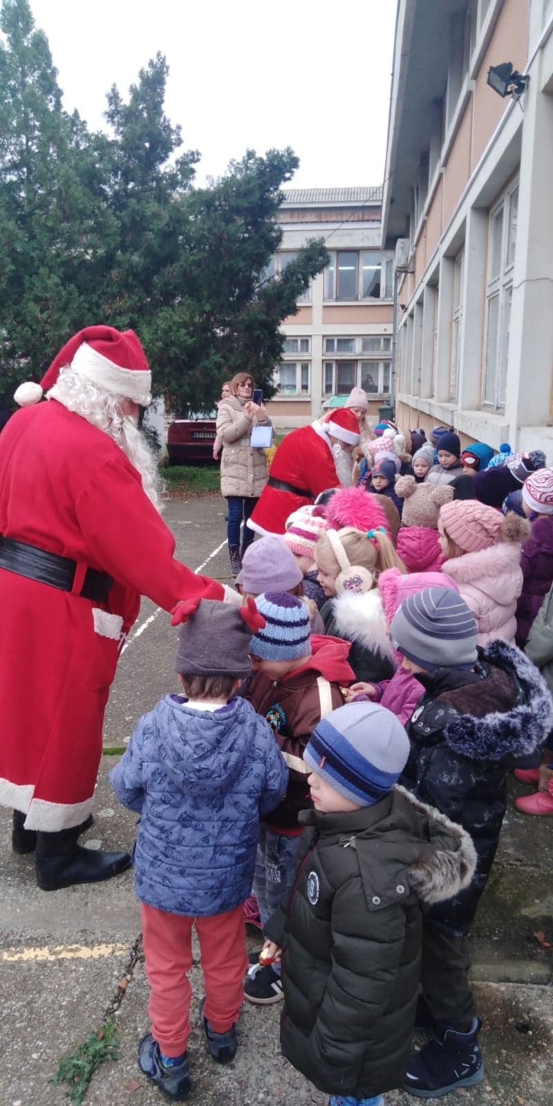 На велико изненађење и радост деце изненада су их посетили Микулаши на коњима и донели им слатке поклоне.