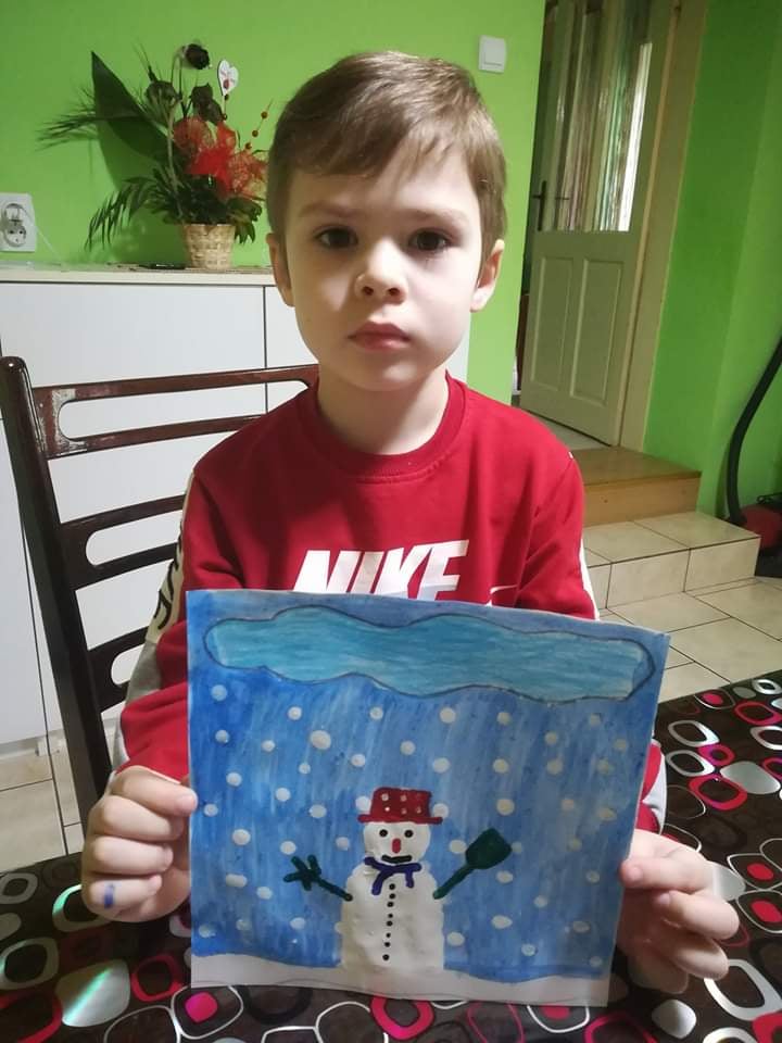 Тако на пример, када нам је пао први снег (у марту месецу) имали су задатак да се упознају са новом песмицом Hul a hó és hozik (Пада снег и веје) и да направе ликовни рад.