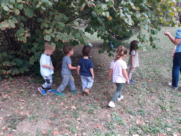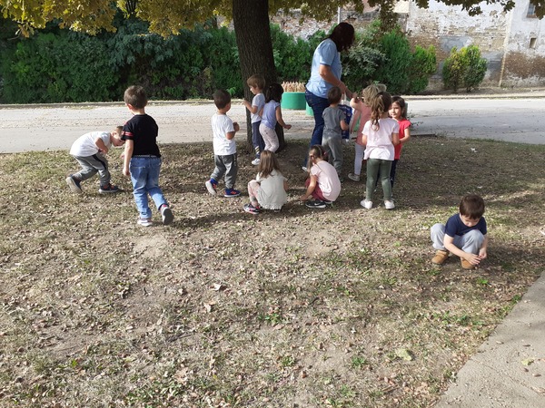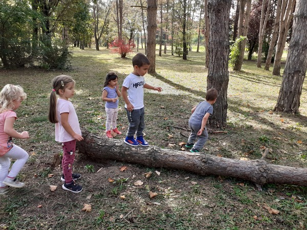 Средња двојезична васпитна група “Коцкице“ су у оквиру пројекта “Јесен у природи“ са својим васпитачицама Кара Беда Габриелом и Ериком Блажић искористивши лепо време, отишли у Горански парк да истражују, посматрају природу и да покупе јесење плодове. Играјући се у парку видели смо веверицу како се пење на дрво. Дан смо засладили ужином у природи.