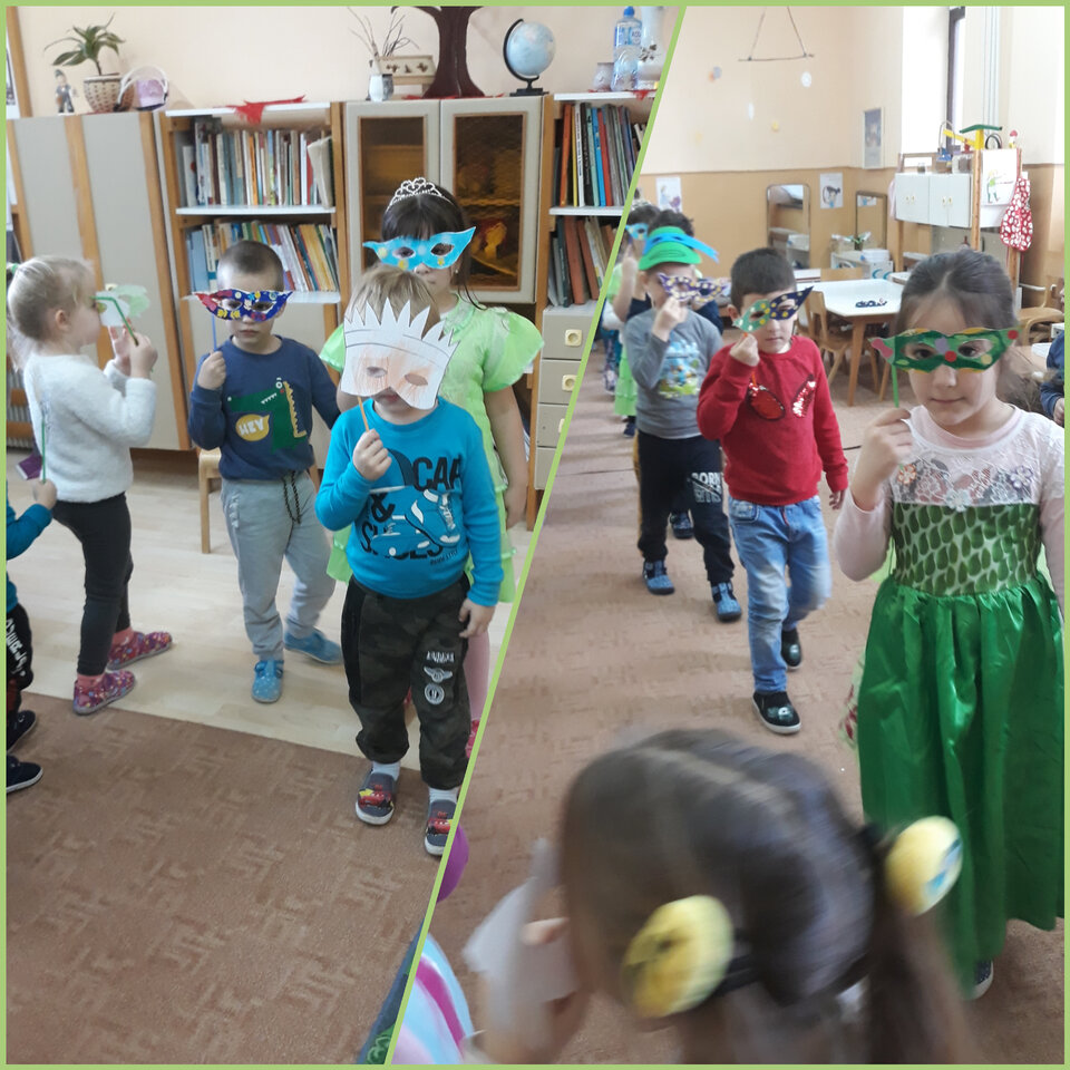 a Kelemen óvodában farsangoztak a gyerekek. Jelmezben jöttek és álarcokat készítettek. Vidám versenyjátékokkal dobták fel a napokat.